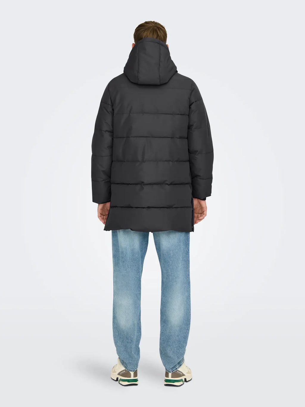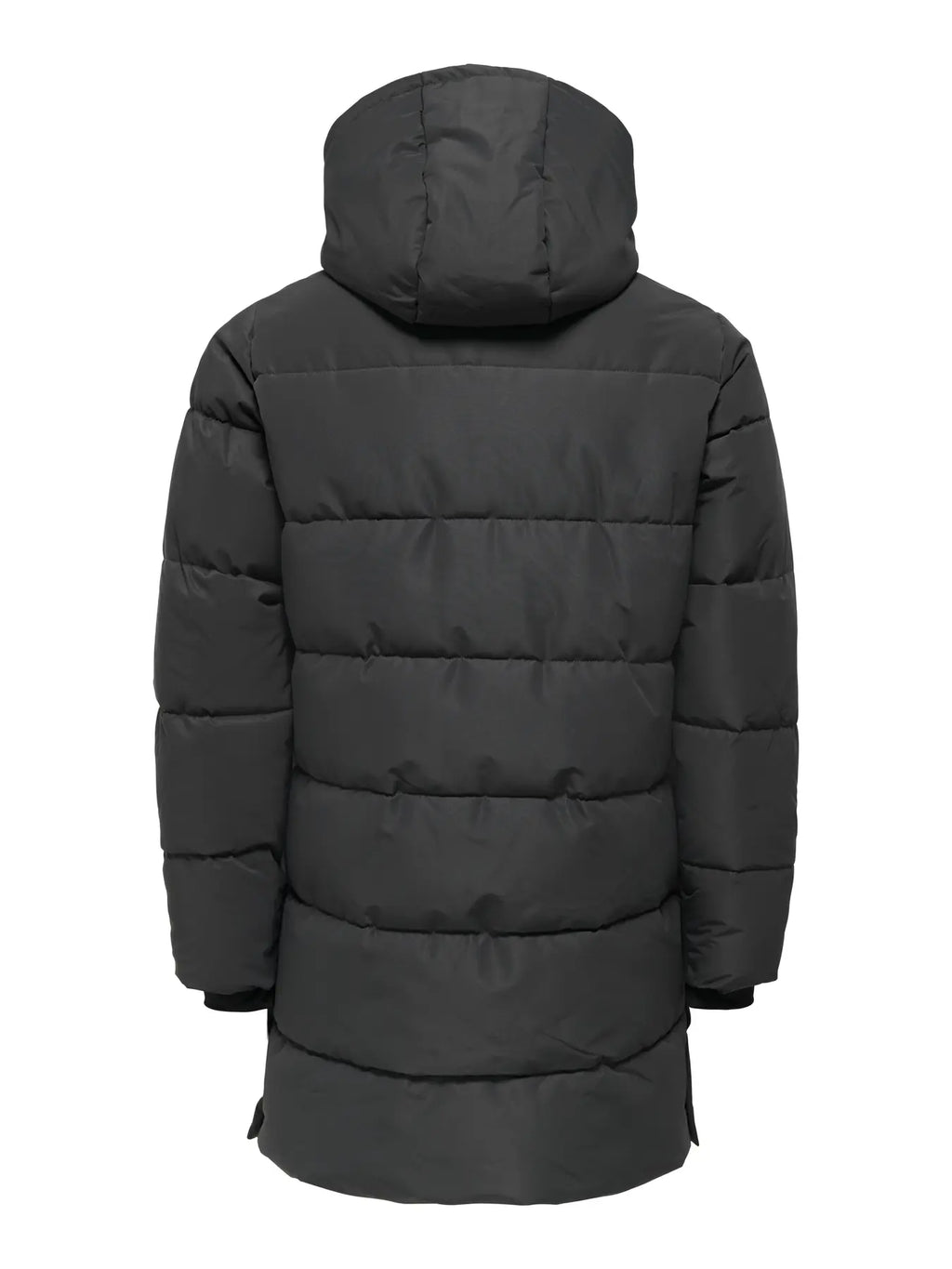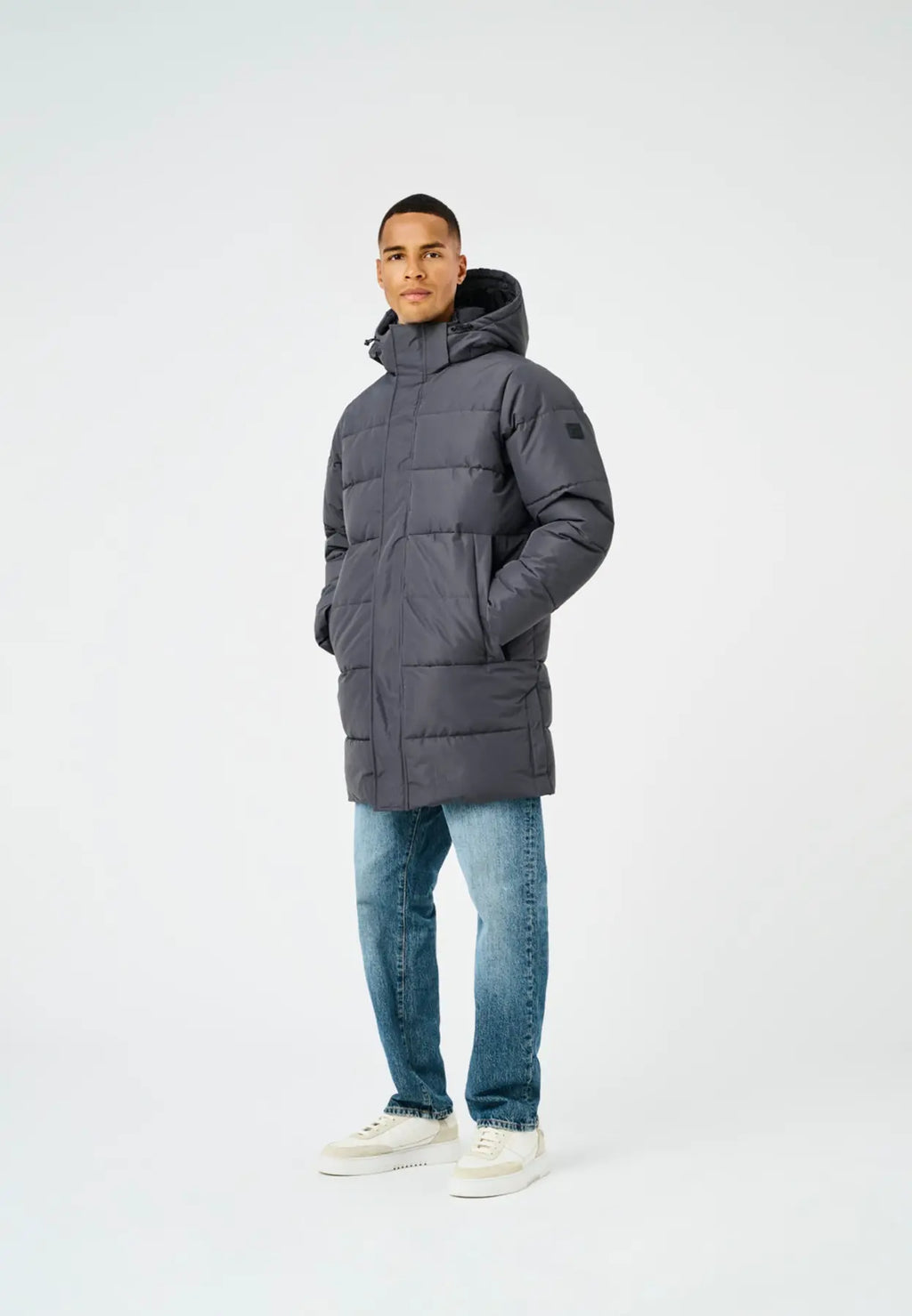 Lang jakke med moderne snit og behagelig pasform – ideel til overgangsperioder og hverdagsbrug.