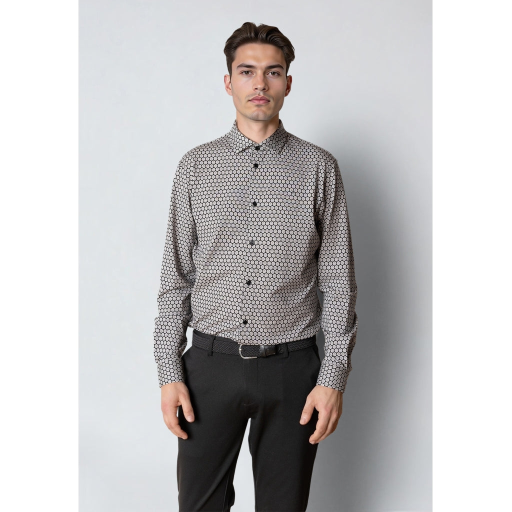 Elegant skjorte med stretch og moderne mønster – komfortabel og stilfuld til formelle og semiformal lejligheder.