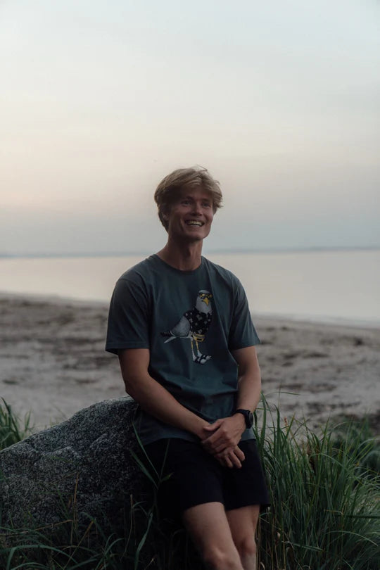 Den klassiske pasform og rund halsudskæring giver en afslappet, tidløs silhuet, mens det kreative design gør den til et perfekt valg for dem, der ønsker at tilføje lidt ekstra personlighed til deres outfit. Sightseer Seagull er perfekt til både afslappede weekendture, feriedage ved stranden eller som en sjov og stilfuld t-shirt i hverdagen.