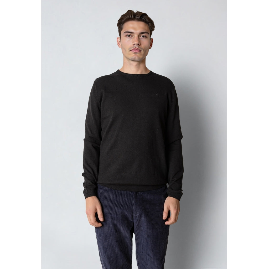 En klassisk og stilren striktrøje i 100 % bomuld, som giver en blød og åndbar komfort. Designet har rund hals, ribkanter og et regular fit, der sikrer en pæn pasform og god bevægelighed.